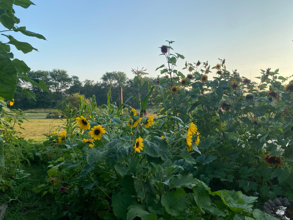 Sunflowers help keep the birds around to pick up grubs plaguing your gardens.