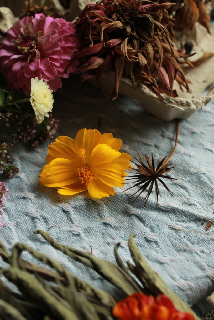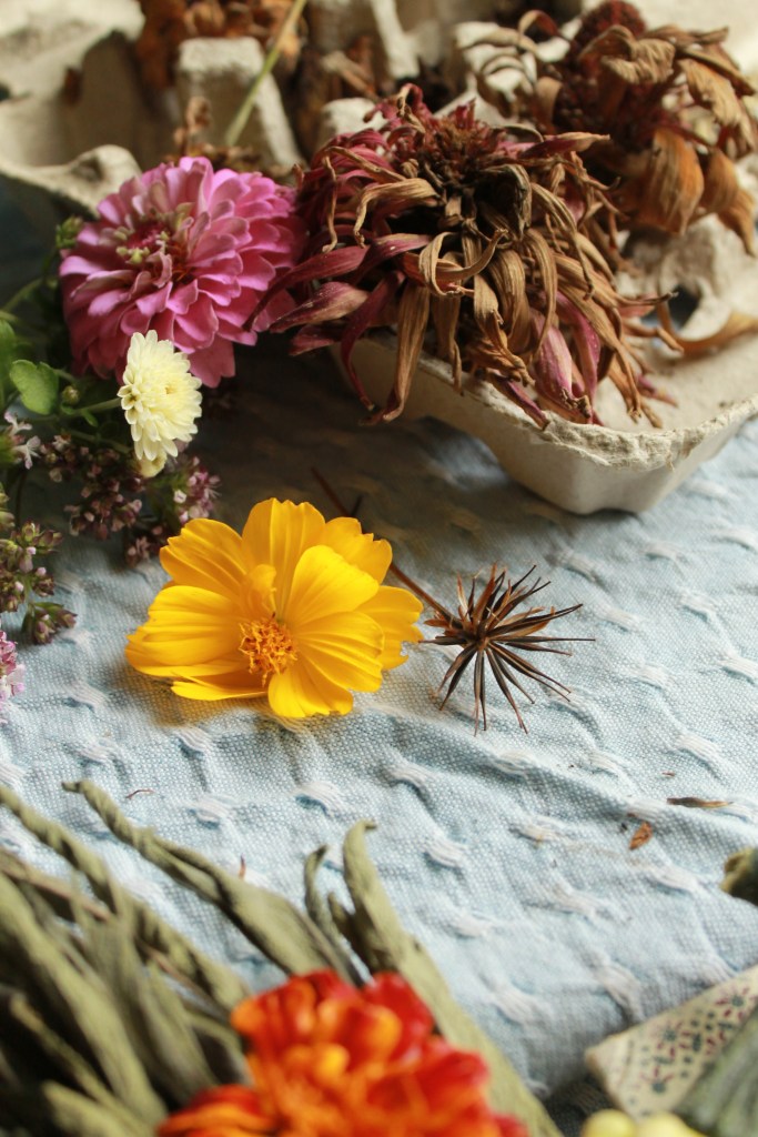 Once you harvest your dried flower head, allow it to dry on a paper towel or plate to make sure all moisture is removed.