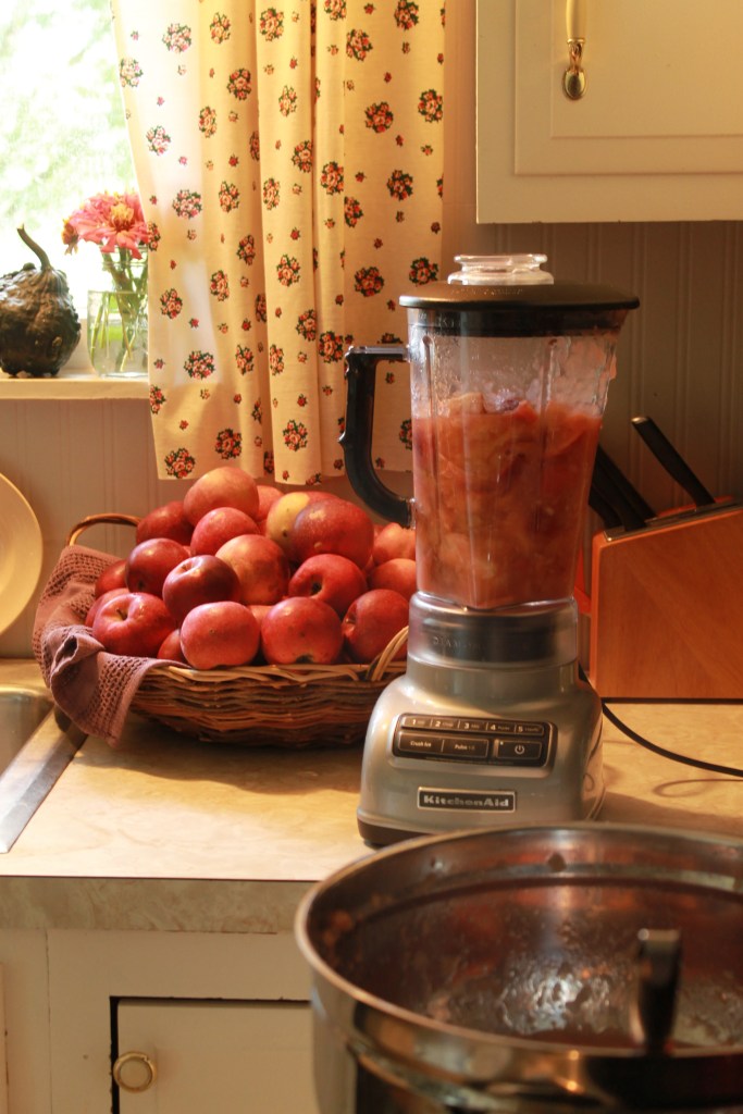 - Blend your apples into a puree via blender, making sure all the skins are well chopped.