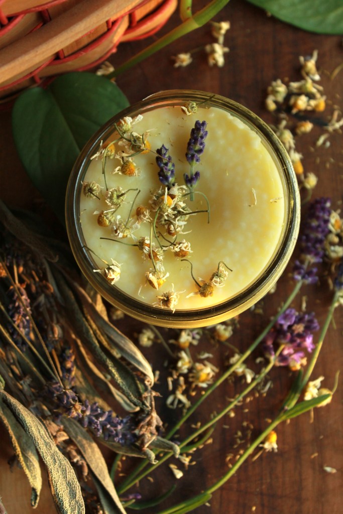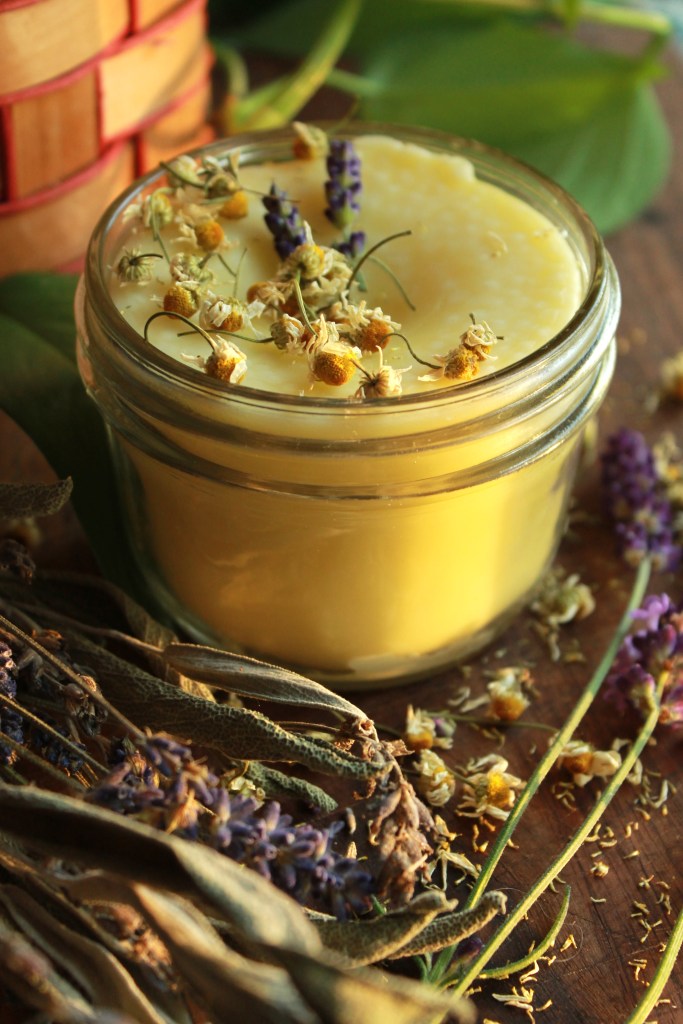 Using a basic salve making method, this Lavender Hand Balm recipe is created to give relief to sore, chapped skin by using lavender, chamomile, calendula, and shea butter.