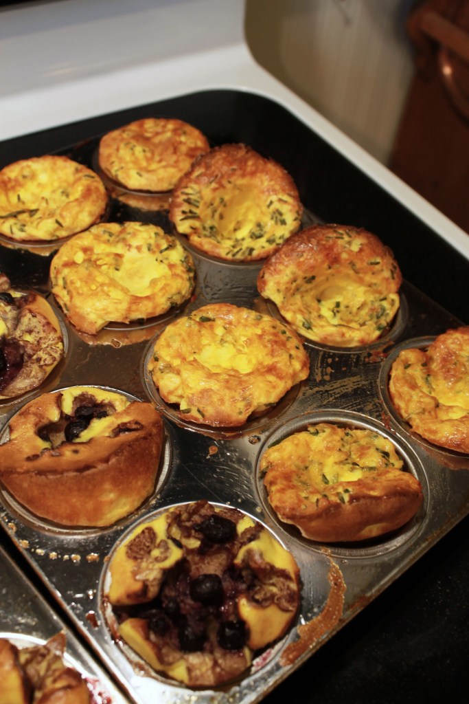 Here I go into tools you need, ingredients, and the instructions on how to make 24 Basic Egg Popovers in muffin tins, along with a few add in ideas.