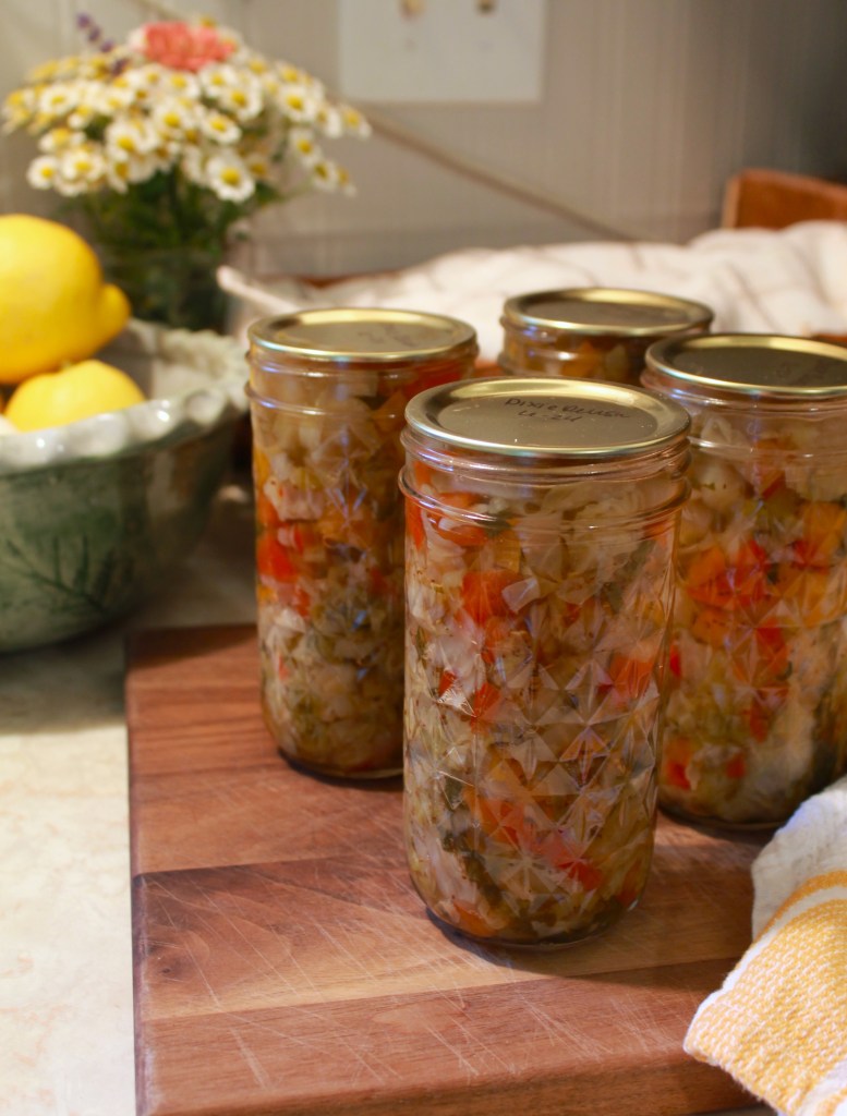 Here I go into tools, ingredients, and instructions on how to water bath can this cabbage, pepper, onion relish, commonly called Dixie Relish.