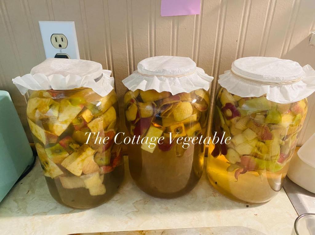 After preserving a half a bushel of apples, (I just made some applesauce), I was able to make about 2 gallons of vinegar with the scraps and cores.