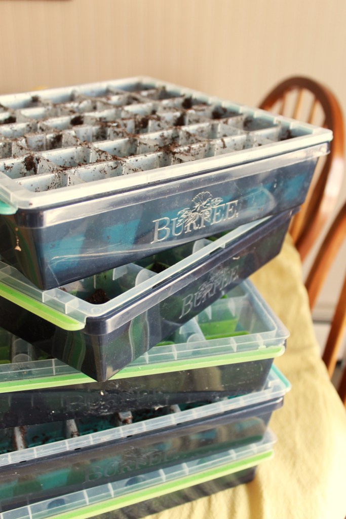 - I have 5 trays total that give me 120 chances to start some seeds at one time. That’s just enough to get my 700 square foot garden started, if I use them twice early in the season by using succession growing. If you have smaller garden, you could more than likely use less trays.