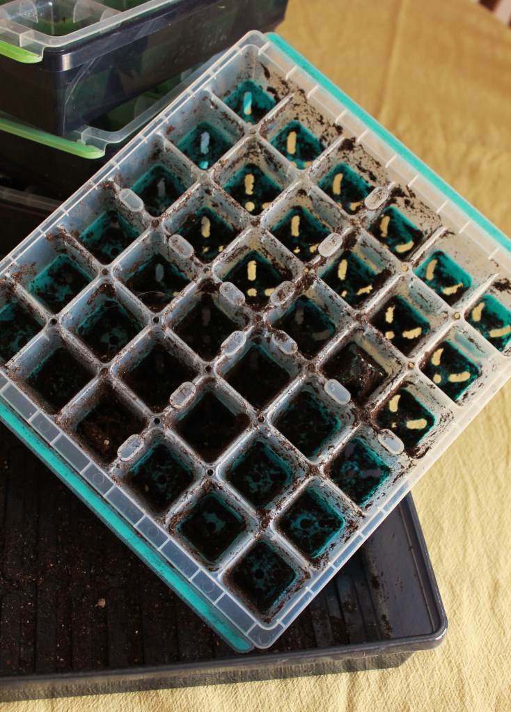 - Then plant your seeds! Be sure to write down on a paper which cell has what seed or make some seed markers.